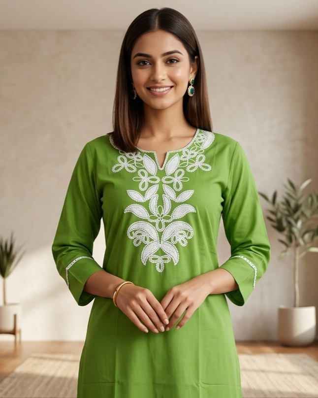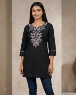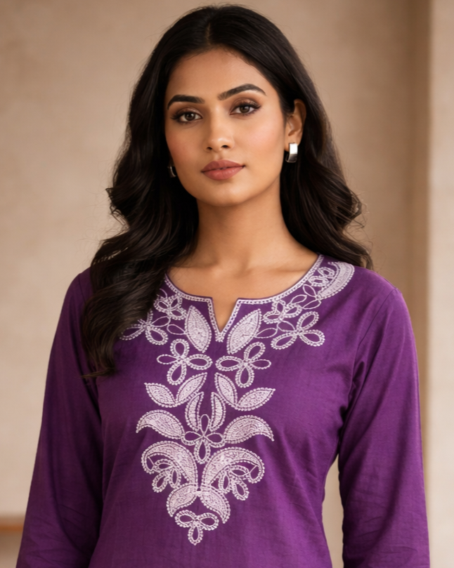 Elegant embroidered tunic for women with a straight fit and stylish neckline design. Perfect for office wear, casual outings, and everyday ethnic fashion.