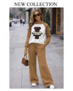 The hoodie features a trendy printed design with a relaxed fit, while the matching wide-leg pants provide a flattering silhouette and all-day comfort. Made from high-quality fabric, this womenโs lounge wear co-ord set is soft on the skin, breathable, and perfect for extended wear.